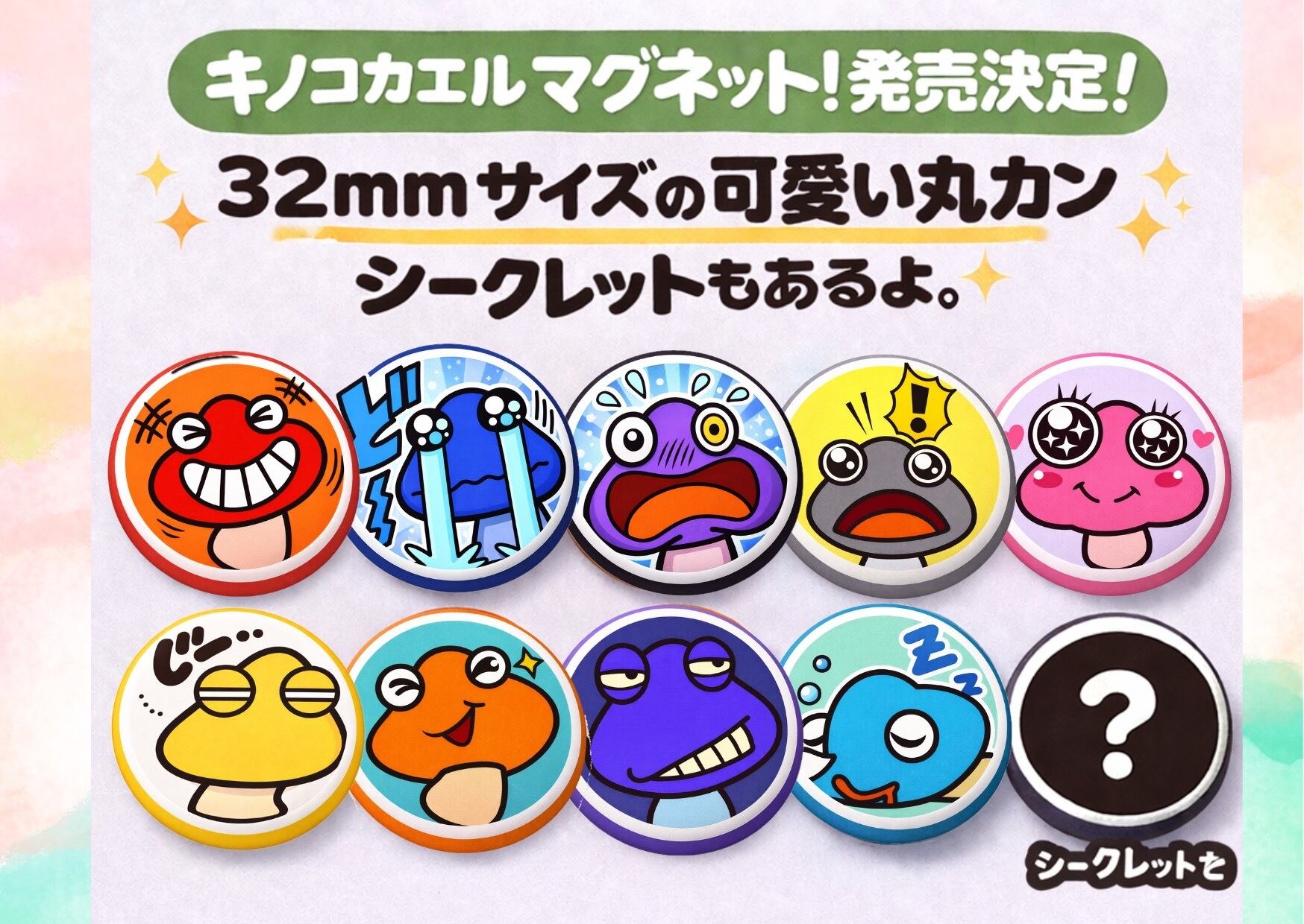 表情ちがいのキノコカエルたちが、あなたの元へ旅立ちます。